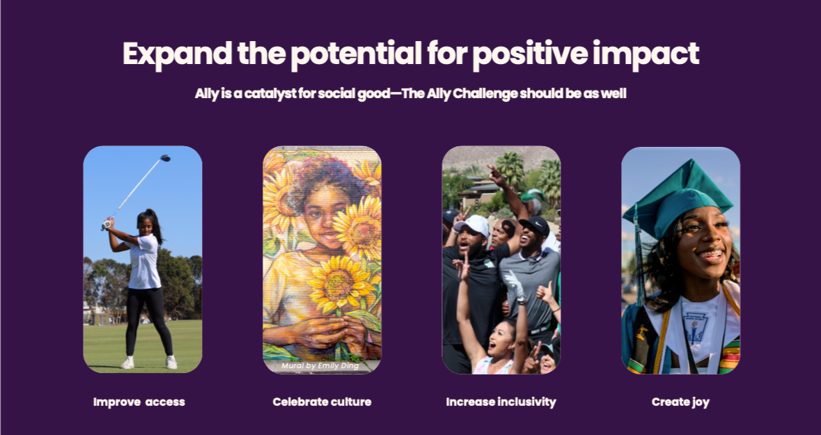 Ally bank set a goal to level up their sports Partnerships portfolio. Specifically, in the NWSL/NWSLPA. They also asked us to think through the Ally Challenge as it relates to their current partnerships in Golf and impact on the Flint community. We chose to brand the deck in their visual language, then delivered our expertise in partnerships through a visually engaging presentation.